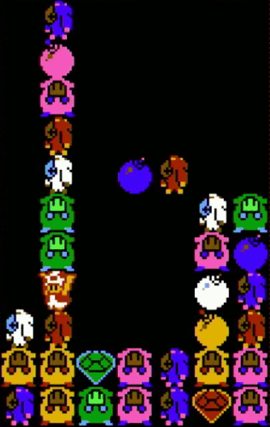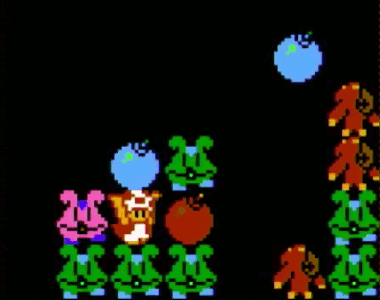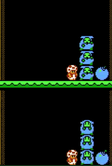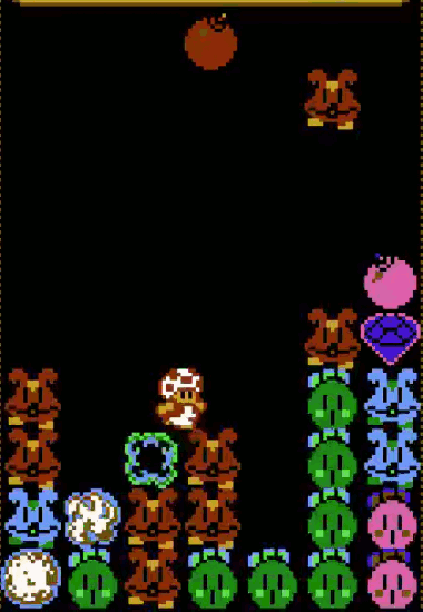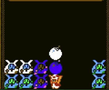 同時に多くのモノが落ちてきたときや、Aボタンで一度に置いたとき、キノピオが入り込むスペースが間にできます。いいタイミングで移動することで割り込むことが出来ます。