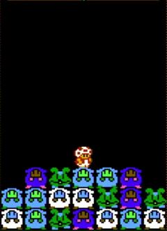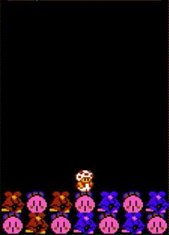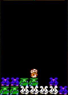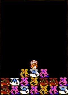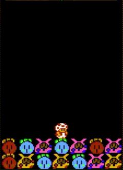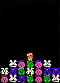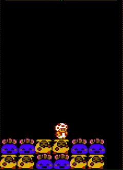来た爆弾の色に応じて四つ縦に並べて消す。出てきたダイヤで残りを消す。爆弾一つでクリアするにはキノピオをどう動かすかにかかっている。