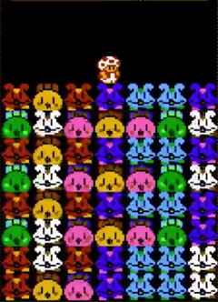 緑色を消すと赤色の斜めが自動的にできるラウンド。それ以外だと水色の縦が比較的作りやすい。青やピンクの爆弾が二個来た場合もダイヤが作りやすいが、基本的に赤を狙うのが楽。