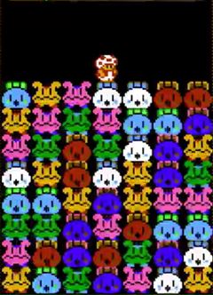 79-Bと同じ形。こちらは斜めモンスターはいない。水色や黄色の斜めが作りやすく、ピンクの縦、右側の白を消せば赤の縦が狙いやすい。縦に並んでいるモンスターも多いので、ダイヤは連続して作りやすい。